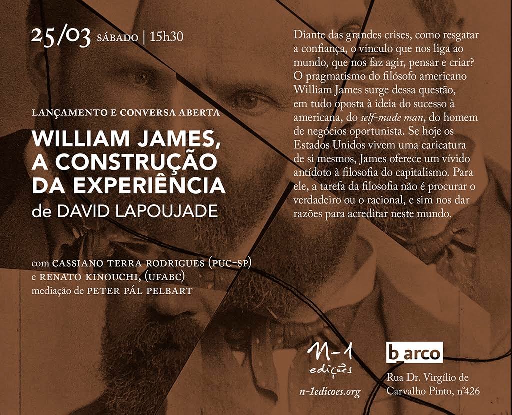 No próximo sábado, dia 25/3, a editora n-1 lançará no b_arco o novo livro do filósofo francês David Lapoujade,”Willian James, a construção da experiência”.